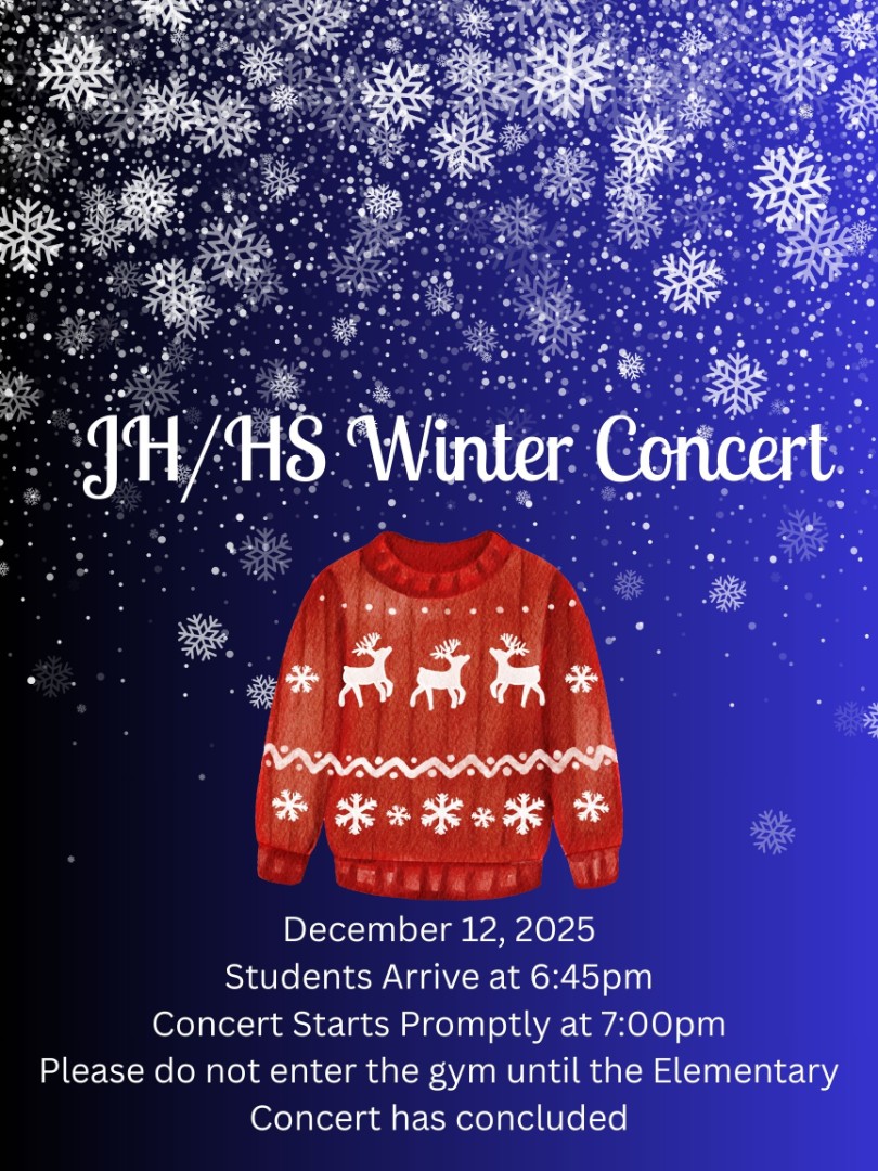 JH/HS students: Please look for a Christmas sweater to wear for the concert with nice pants