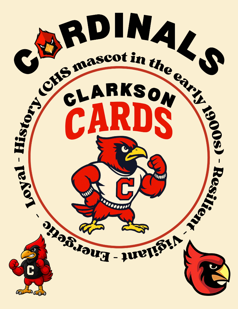 We invite all Clarkson patrons and students to help select our school mascot by casting their vote in person at the Clarkson Public School lobby. Voting will take place on Friday, December 12th during two time windows: 3:30-4:00 pm and 5:30-7:30 pm. This opportunity is reserved exclusively for Clarkson community members and students grades 6th-12th, and your participation is an important part of shaping our school spirit and identity.