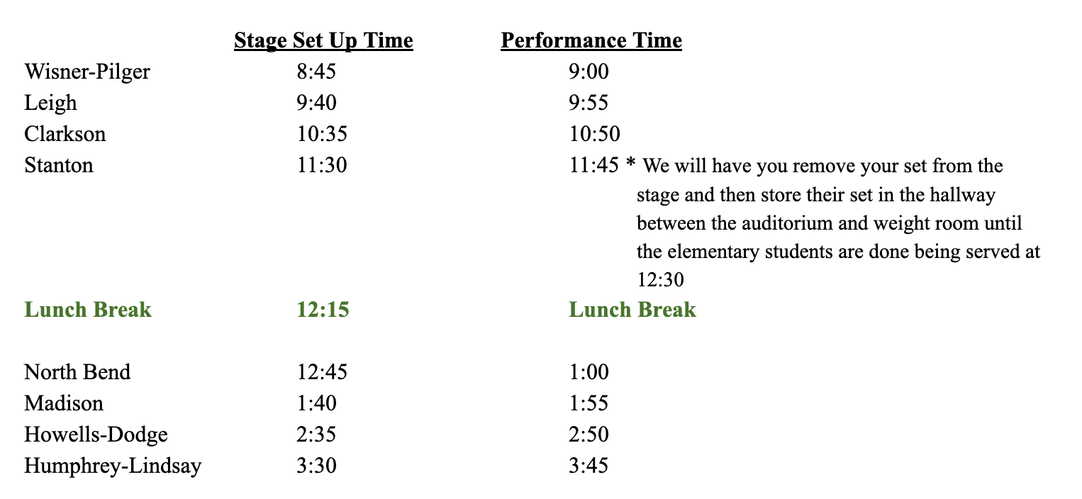 East Husker Conference One-Act Competition, (West Division) will be on November 18th beginning at 9:00 am and at Wisner-Pilger High School (hosted by Humphrey).