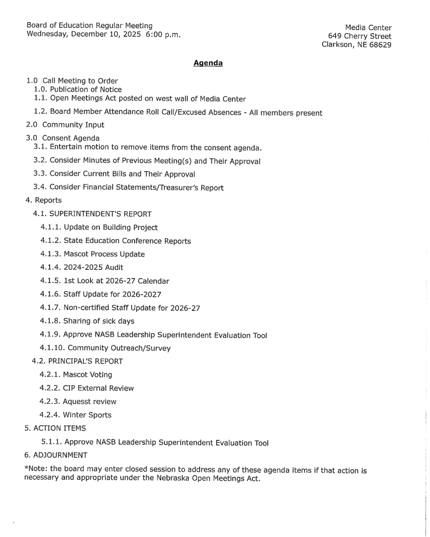 December 2025 Agenda