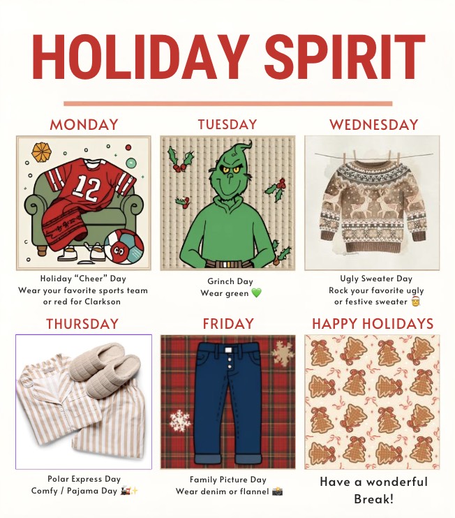 Just a reminder that we will have a 1:00 pm dismissal on Thursday and Friday. Also, Thursday is the last day for Elementary Students.
