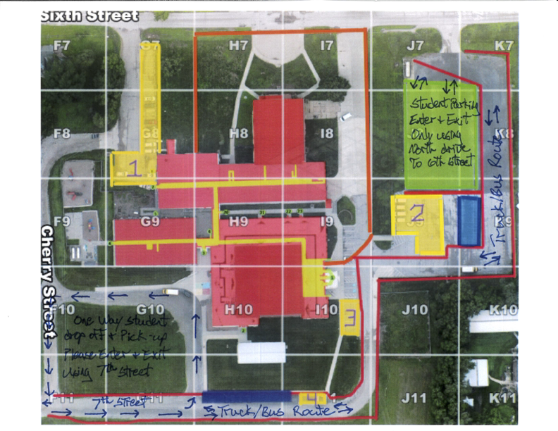 For high school students, they need to enter and exit the parking lot using the north drive and park on the rock.