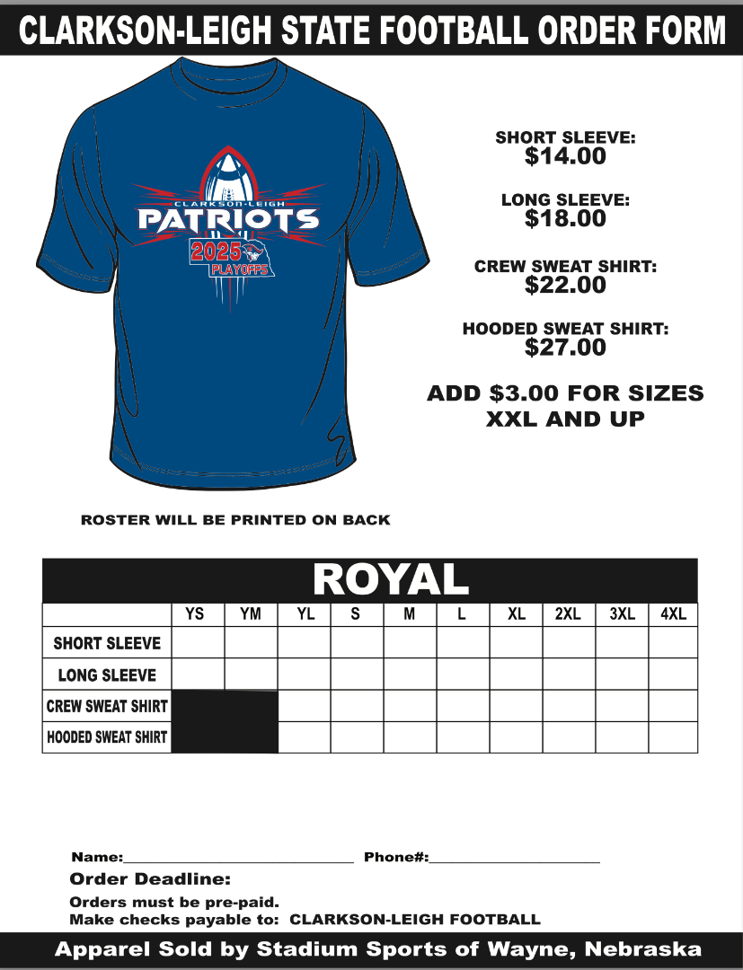 ORDERS ARE DUE THURSDAY, OCTOBER 16TH.